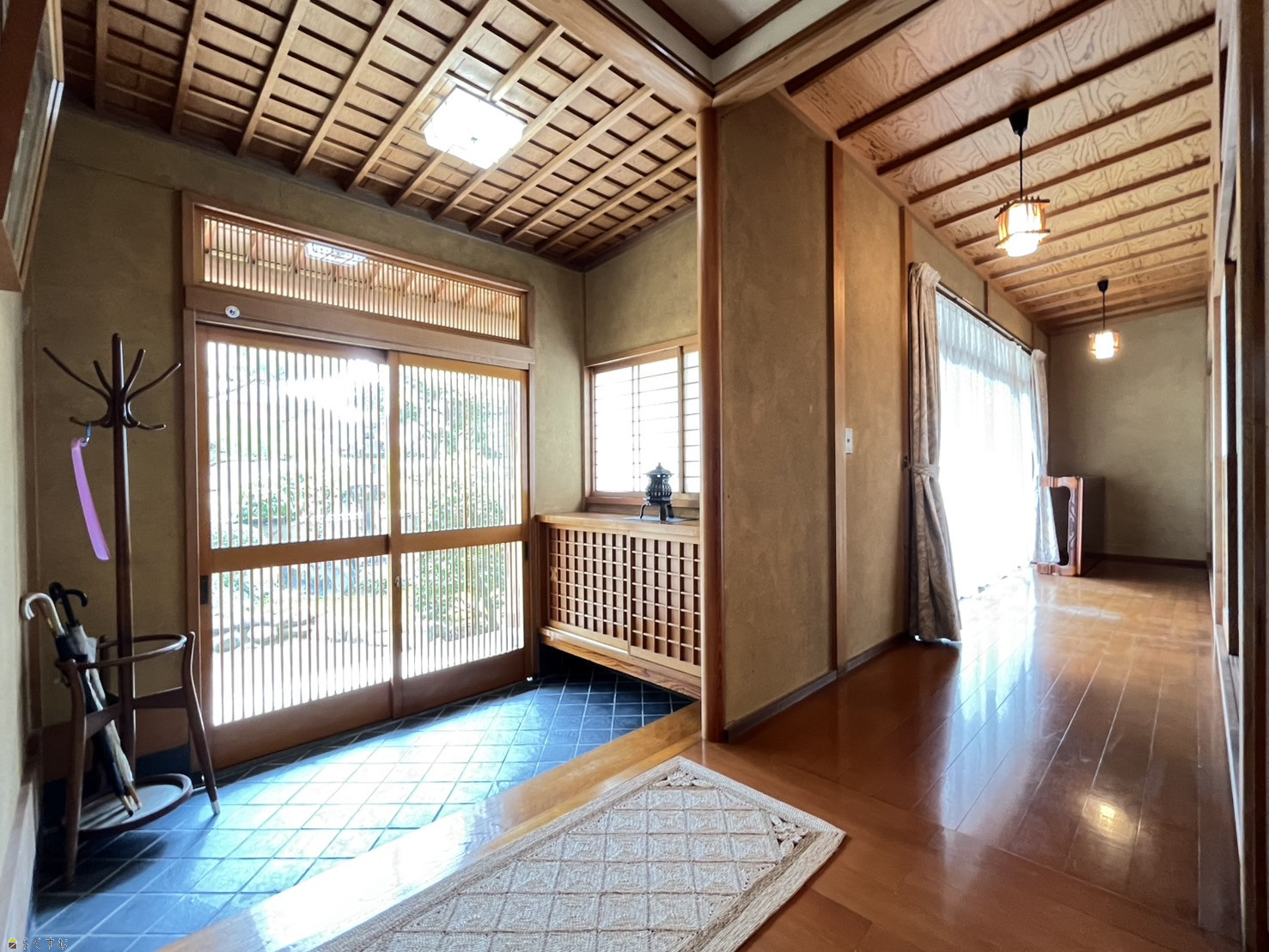 格子戸や木の風合いが美しい、落ち着きある和の玄関。