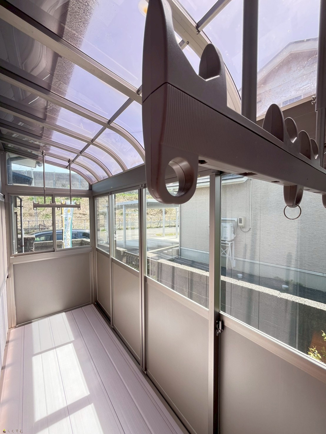 南向きの明るいサンルームで、洗濯物干しにも便利です。