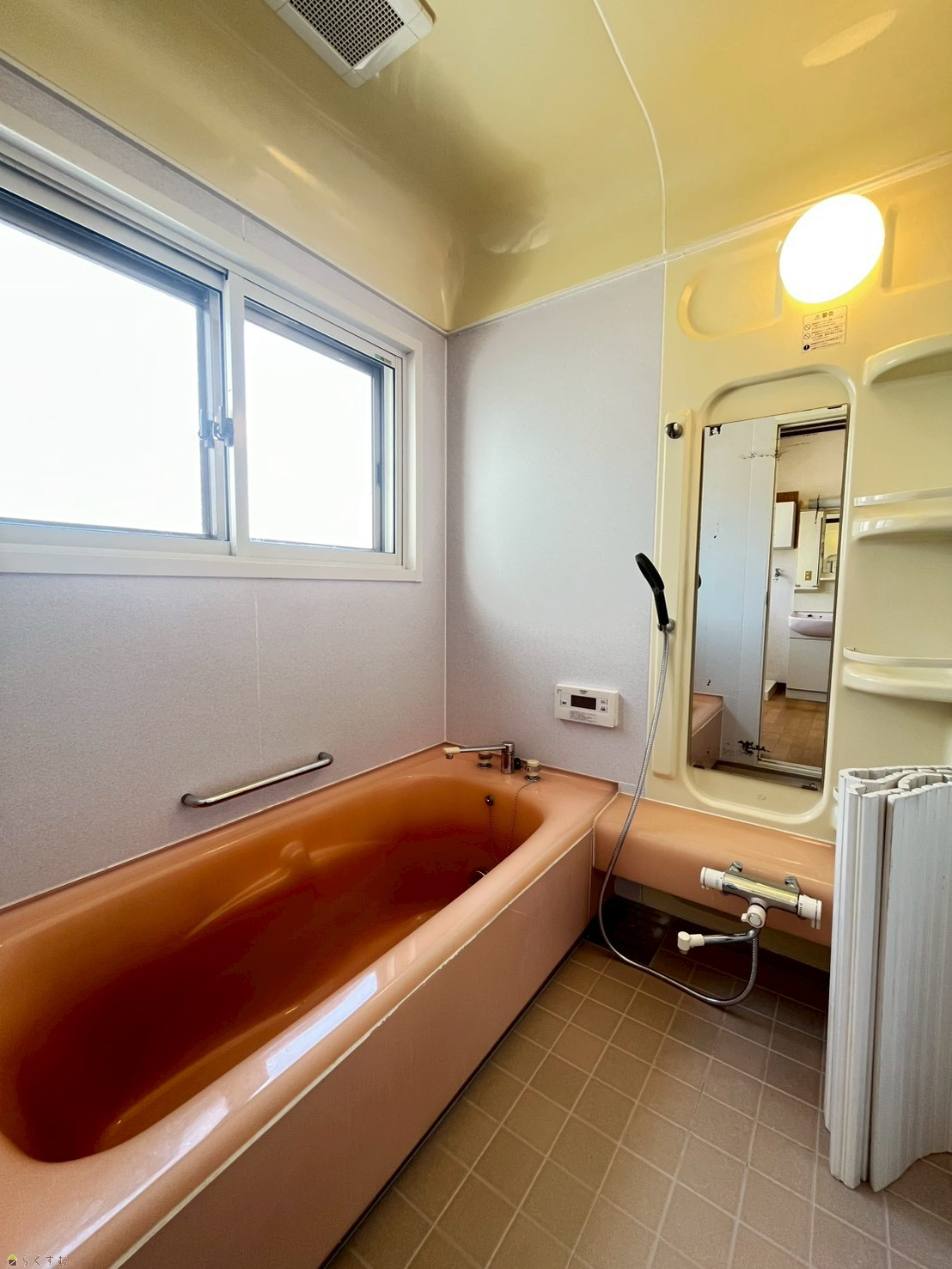 足を伸ばせる広々とした浴槽♪窓もあるので換気も十分にできます