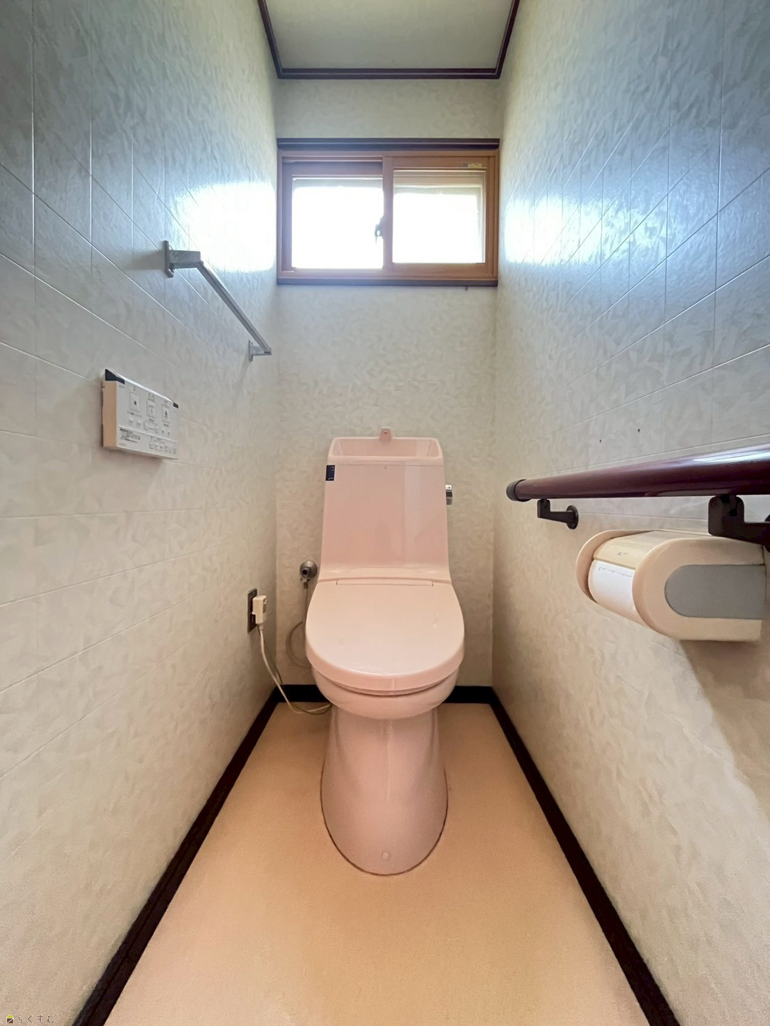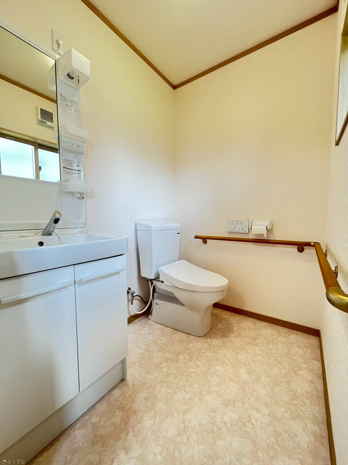 L字手すり付きで安心、洗面台も備えた使いやすいトイレ。
