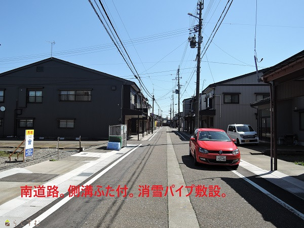 南道路。側溝ふた付。消雪設備。