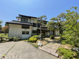 出雲崎町川西。風情豊かな庭を望む、9DKの中古住宅。敷地内大型車庫・作業所あり。